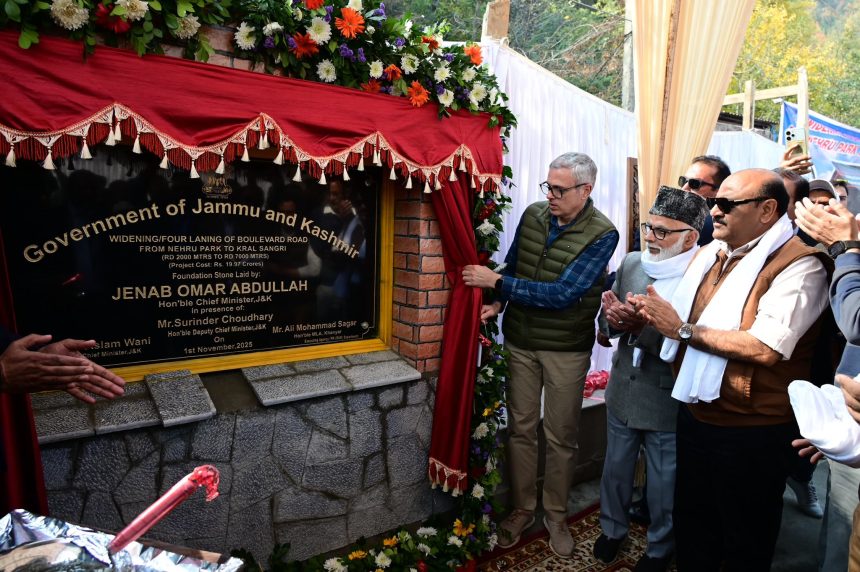 Srinagar, Nov 1: Chief Minister Omar Abdullah on Saturday laid the foundation stone for the widening and four-laning of the Boulevard Road from Nehru Park to Kral Sangri in Srinagar.