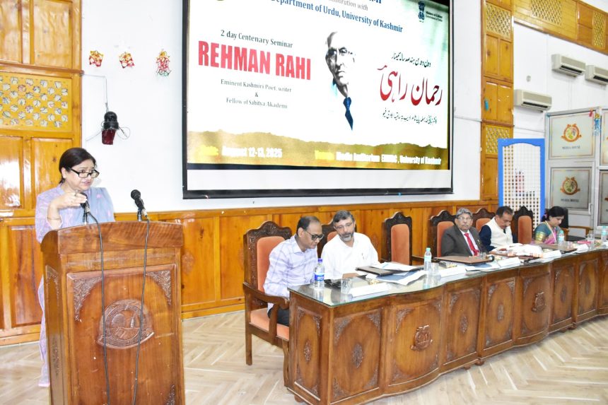 Srinagar, Aug 12: The University of Kashmir (KU) and Sahitya Akademi, Ministry of Culture, jointly organised a two-day national seminar to commemorate celebrated Kashmiri poet, translator and critic Rehman Rahi (1925–2023), the only Kashmiri recipient of the Jnanpith Award. The event marked his birth centenary and brought together eminent scholars to reflect on his contributions to Kashmiri verse, Urdu criticism and comparative literature.