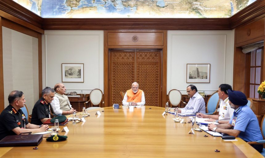 In the lead-up to a high-stakes Cabinet Committee on Security (CCS) meeting scheduled for Wednesday, Prime Minister Narendra Modi on Tuesday convened a top-level security meeting at his official residence, 7 Lok Kalyan Marg. The meeting was attended by Defence Minister Rajnath Singh, National Security Advisor Ajit Doval, Chief of Defence Staff General Anil Chauhan, and the chiefs of the Army, Navy, and Air Force.
